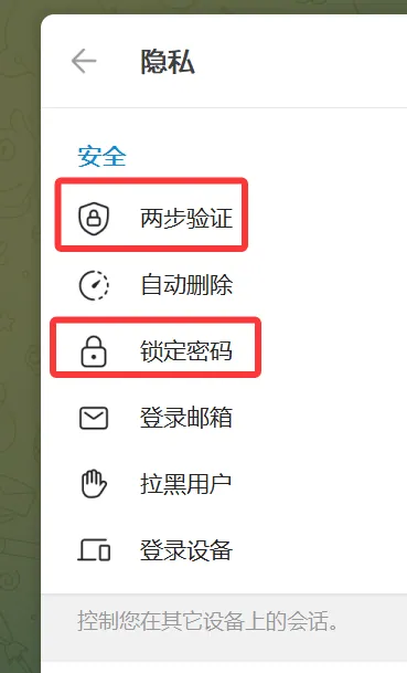 - 进入Telegram“设置>隐私与安全”页面。